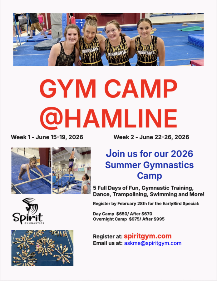 2026 Gym Camp @Hamline registration Now Open! Join us for our annual camp June 15-19 and June 22-26. Day and overnight options available!